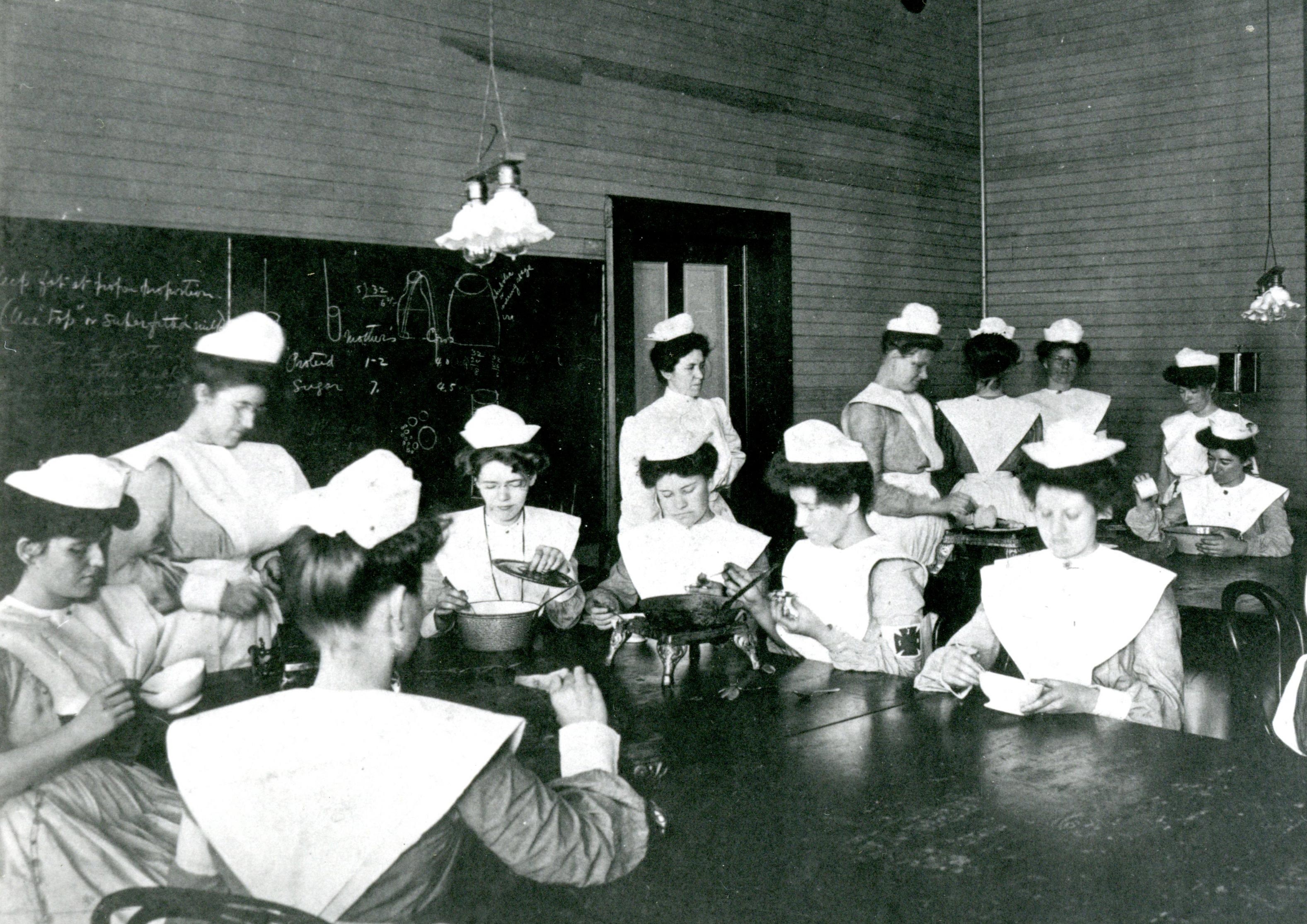 Photo from UTMB Galveston Library. 1904 nurses taking an invalid cooking class .